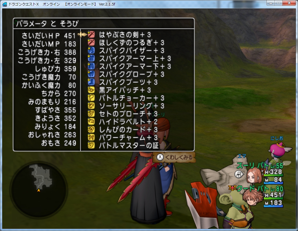 ステータスと装備は下記の通り。