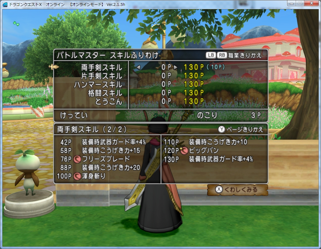 というわけで、見ての通りバトルマスターのスキル全てを130まで振りました。