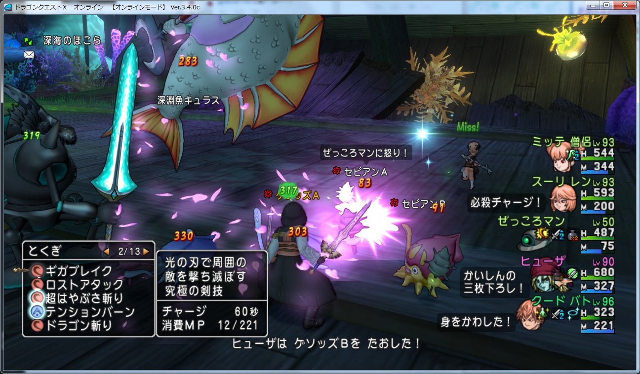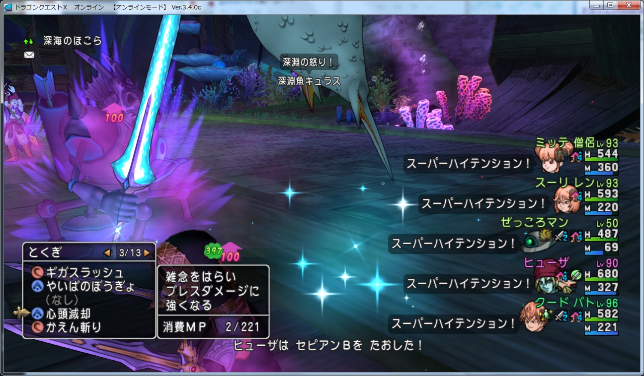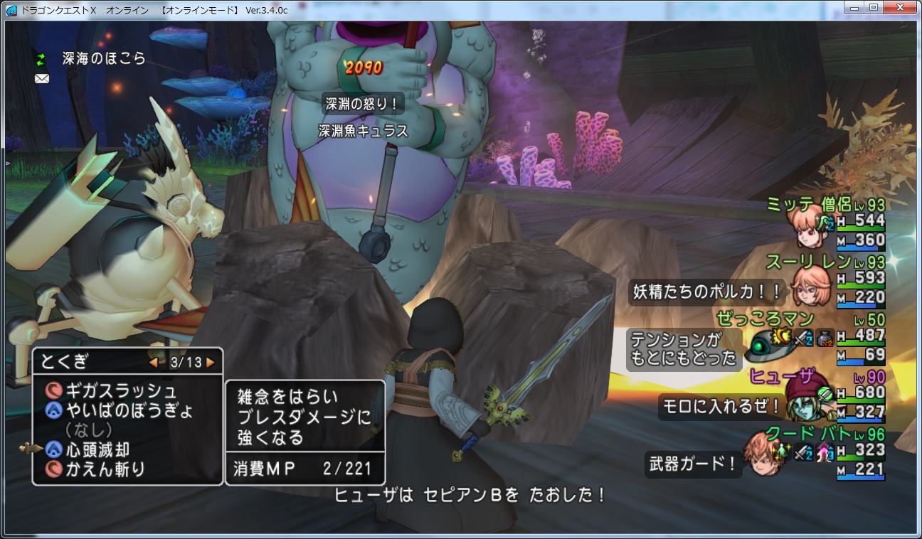 仲間を呼び始めたあとはずっと同じ流れで、雑魚を呼ばれたらおたけびで動きを止める→ヒューザが三枚に下ろす→SHT特技をぶっ放すを繰り返します。