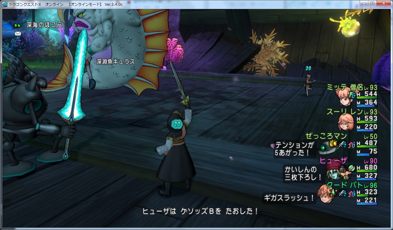 崩れるとヒューザが復活ばっかりしちゃうので、回復厚めのパーティで三枚おろしを優先してもらうほうが安定すると思いました。