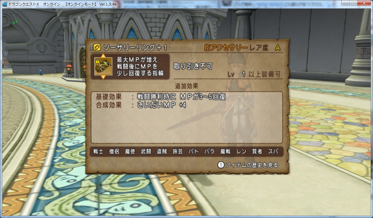 仲間モンスター用に1個確保できればよかったのですが、棚から牡丹餅ってことで自分用のソサリを合成しに行きます。