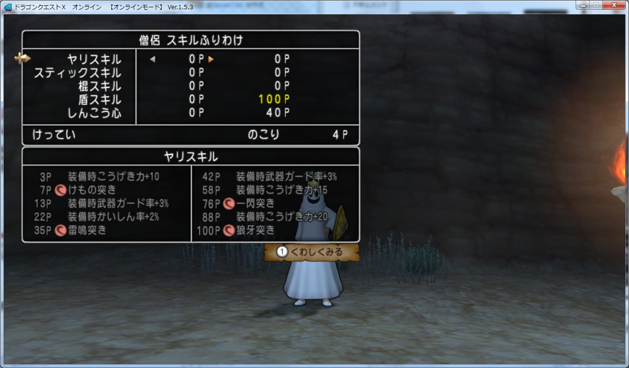 「信仰心」や「とうこん」はその職業特有のものですが、武器スキルは努力の汗と涙の結晶みたいなもんなので、そこは有効にして欲しいなぁとも思います。