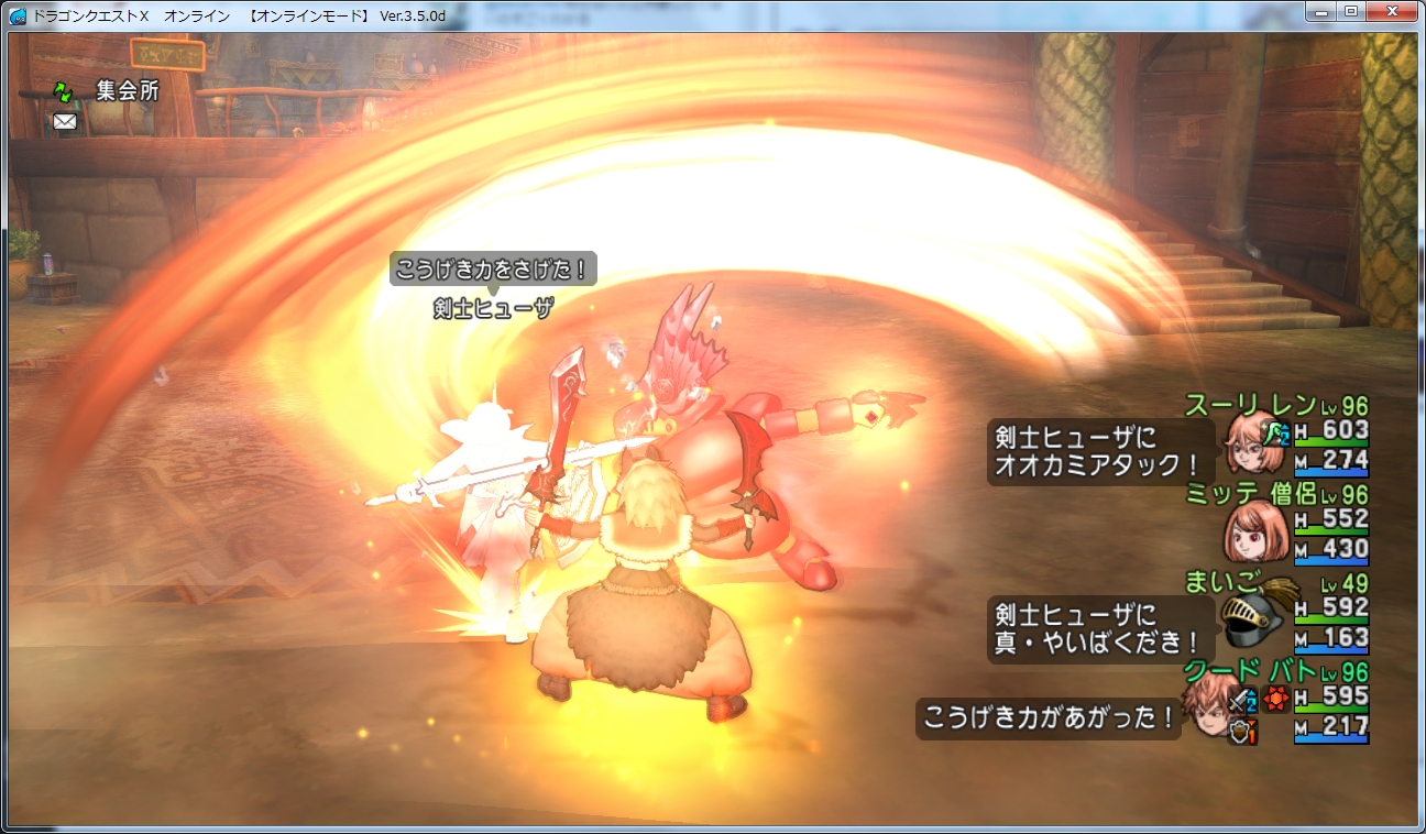 単なる通常攻撃で500ダメージ受けるので、迷子の真やいばくだきとミッテの武神の護法が生命線です。